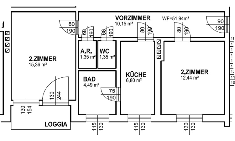 Mehr InformationenDie im 1. Obergeschoss gelegene Wohnung bietet eine Wohnfläche von rund 55 m² und überzeugt durch eine durchdachte Raumaufteilung. Diese umfasst einen Vorraum, eine Küche, zwei Zimmer sowie einen praktischen Abstellraum. Das Badezimmer und das WC sind separat angeordnet. Vom Wohnzimmer aus gelangt man auf den Balkon.