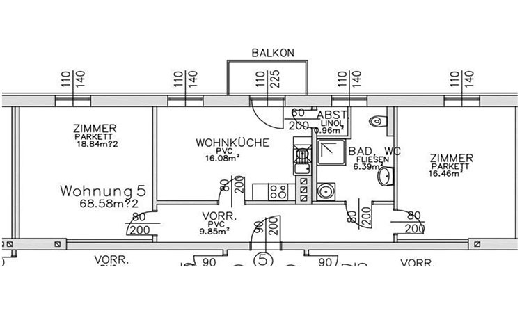 Mehr InformationenDie ca. 68 m² große Wohnung befindet sich im 1. Obergeschoss und überzeugt durch eine gut durchdachte Raumaufteilung. Sie gliedert sich in einen Vorraum/Gang, eine helle Wohn-Essküche sowie zwei weitere Zimmer. Von der Wohnküche aus gelangt man direkt auf den Balkon, der zum Entspannen einlädt.